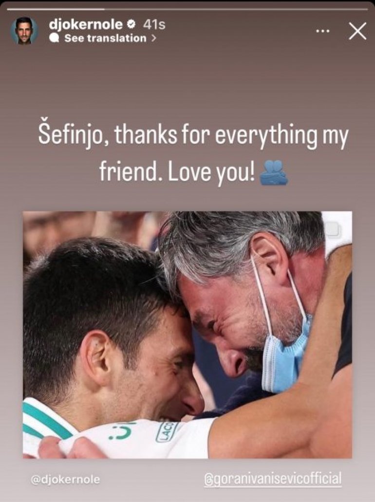 NAKON skoro pet godina Goran Ivanišević nije više trener Novaka Đokovića, objavio je Nole na Instagramu.