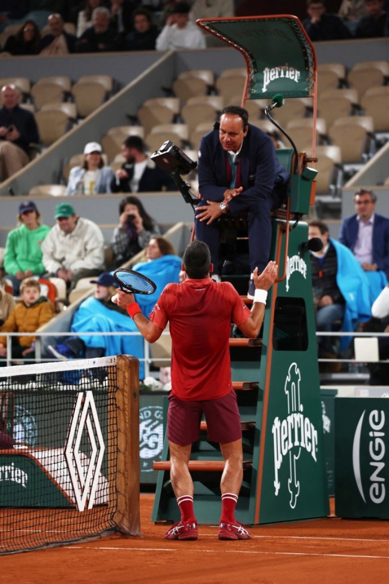 Srpski teniser je u istorijskom meču koji je ušao u anale Rolan Garosa kao najkasnije završen susret pošto je igran do 3.08 posle ponoći pobedio u borbi koja je trajala pet setova. On je ujedno izjednačio i rekord Rodžera Federera po broju pobeda na grend slem turnirima pošto mu je obo bio 369. trijumf na jednom od četiri najveća turnira.