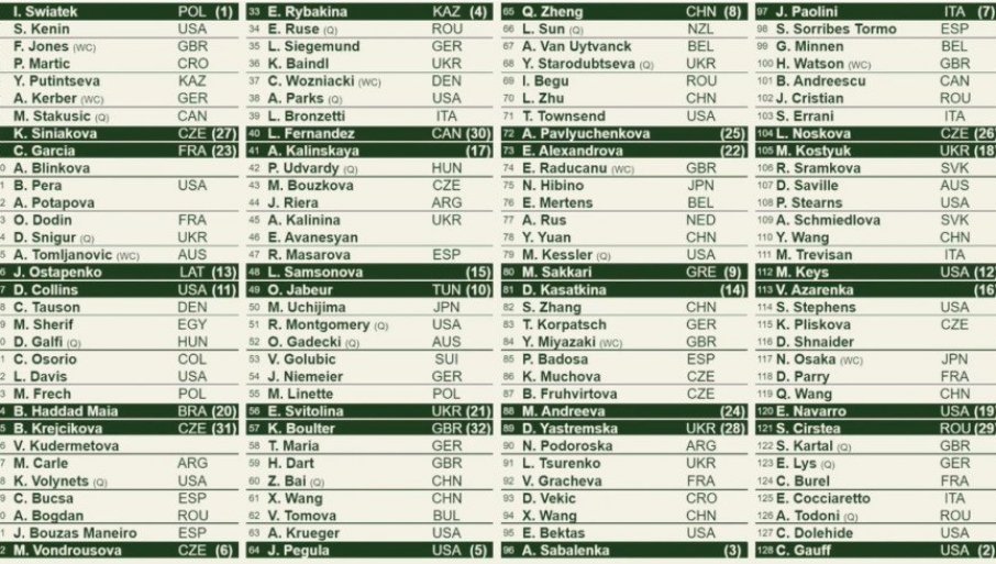 Ovo je kompletan žreb teniserki na Vimbldonu