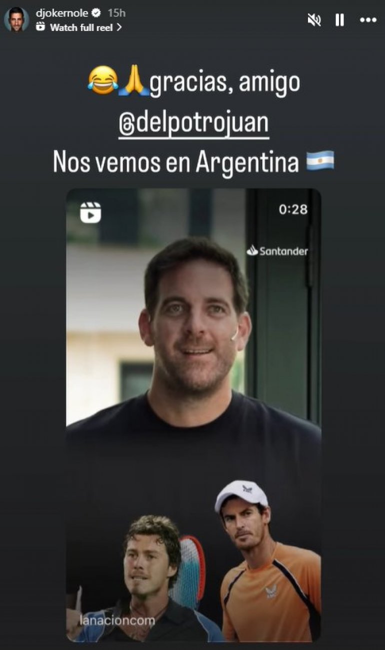 - Hvala, prijatelju. Vidimo se u Argentini - napisao je Đoković.