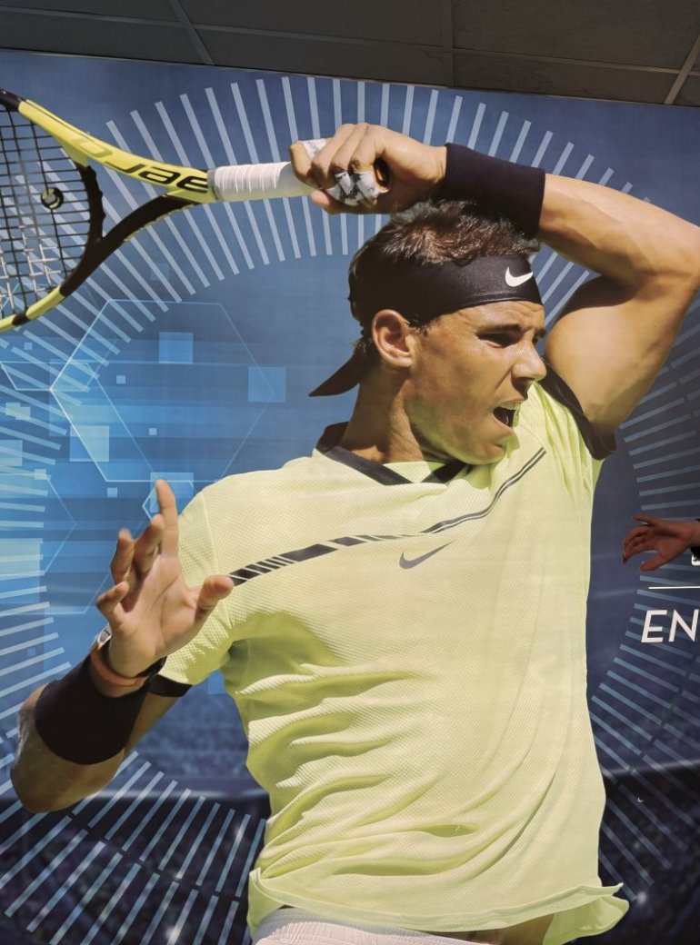 U izložbenoj sali postavljena je čitava lepeza njegovih reketa, još od samih početaka, od onih lakših, klinačkih, neboplavih, do ubitačnih narandžastožutih u teniskom smiraju. Publika ovde može da vidi i opremu, impresivne statističke podatke, akreditacije. Tu su i patika iz 2004. godine koja je hrabro istrčala do titule i fotografije sa nebrojenih slavlja.