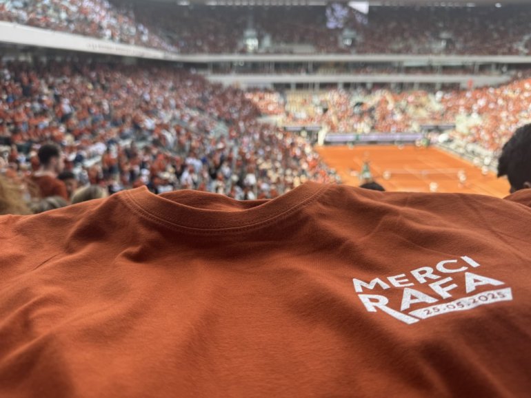 Majice u boji pariske šljake, s napisom "Mersi Rafa" i datumom 25. 05. 2025. koje su organizatori podelili gledaocima na centralnom stadionu "Filip Šatrije" u nedelju u Parizu na oproštaju teniske legende, dostigle su na crnoj berzi cenu od preko 550 evra!