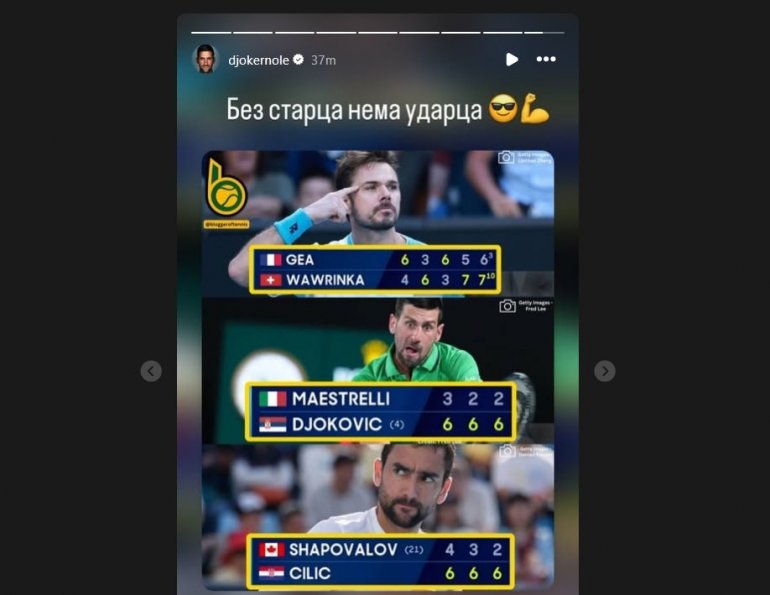 Novak Đoković je te rezultate objavio na svojoj Instagram stranici i, iako se oni tiču i hrvatskog asa, pa će objavu čitati i hrvatska javnost, na ćirilici je poručio: