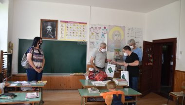 ĐACIMA NA POKLON KNJIGE I LOPTE: Čelnici Knića posetili seosku školu u Guncatima