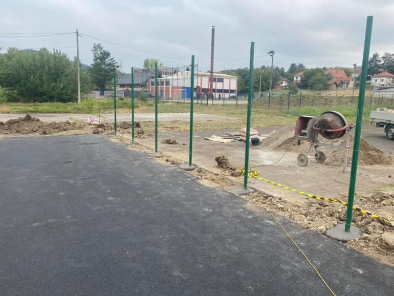 POSTAVLjANjEM konstrukcije za zaštitnu ogradu oko igrališta, nastavljeni su radovi na rekonstrukciji košarkaškog terena Osnovne škole „Svetozar Marković” u Rekovcu.