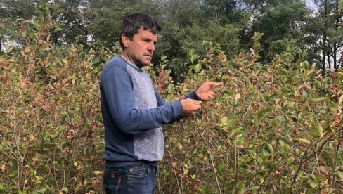Na svom poljoprivrednom gazdinstvu na 40 ari zemljišta on ima 500 žbunova ove neobične voćne vrste čije su tamnoplave bobice izuzetno lekovite. Počeo je da je uzgaja pre desetak godina, kada je aronija bila pravi hit, pa iako je većina proizođača u međuvremenu imala probleme sa plasmanom, kaže da se nije pokajao.