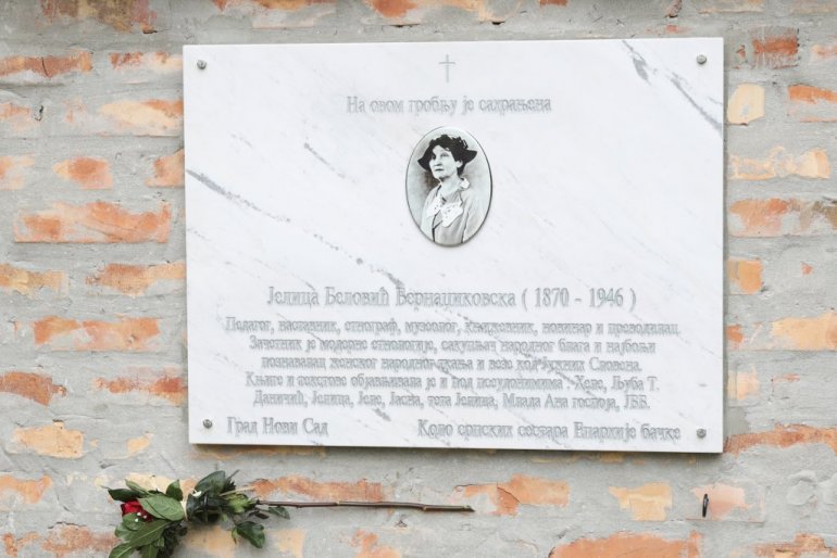 POVODOM sedam ipo decenija od smrti Jelice Belović Bernadžikovske (1870-1946), koja je bila vrsni pedagog i etnograf, vredni sakupljač narodnog blaga i najbolji poznavalac ženskog narodnog tkanja i veza kod Južnih Slovena, danas je na novosadskom Uspenskom groblju, otkrivena spomen ploča.