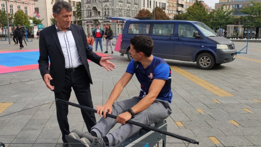 Osvajač zlatne i srebrne olimpijske medalje, jedan od najtrofejnijih zrenjaninskih sportista, rukometaš Momir Rnić, u društvu sina, snaje i unuka, uveličao je Sportski dan u centru Zrenjanina.