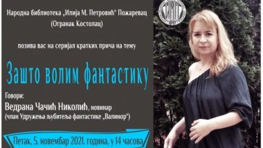 U PETAK, 5. novembra, od 14 sati, u Biblioteci u Kostolcu organizuje se predstavljanje serijala kratkih priča na temu „Zašto volim fantastiku“.
