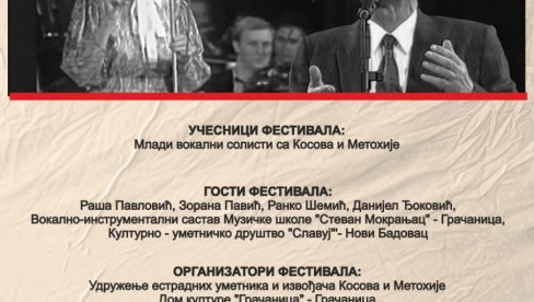 VEČERAS u gračaničkom Domu kulture održaće se drugi festival pod nazivom „Carski glasovi”, posvećen Jordanu Nikoliću i Mari Đorđević, istaknutim umetnicima sa KiM, koji su svoj život posvetili kosovsko-metohijskoj pesmi i ostavili pečat u muzici.