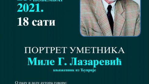 AUTORSKO veče Mileta G. Lazarevića, književnika iz Ćuprije, biće održano u četvrtak, 25. novembra, u Književnom klubu “Đura Jakšić" u Jagodini.