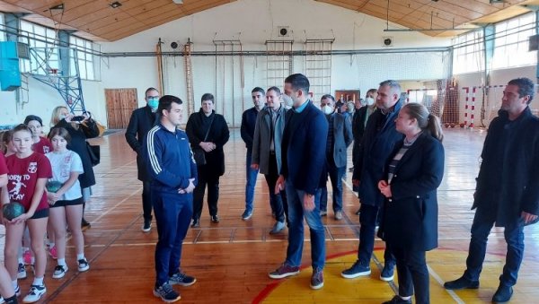 - Cilj nam je da do kraja ove godine jedna četvrtina svih fiskulturnih sala širom Srbije dobije novu opremu i rekvizite koji se ogledaju u dva gola, dve table, dva obruča, 40 lopti, po 10 za četiri kolektivna sporta i mrežu za odbojku. Na taj način želimo da postaknemo decu da uđu u sistem sporta i rekreativnog sporta, školskog sporta, kao i da motivišemo profesore da imaju kvalitetnuju opremu za rad sa decom - rekao je ministar Vanja Udovičić