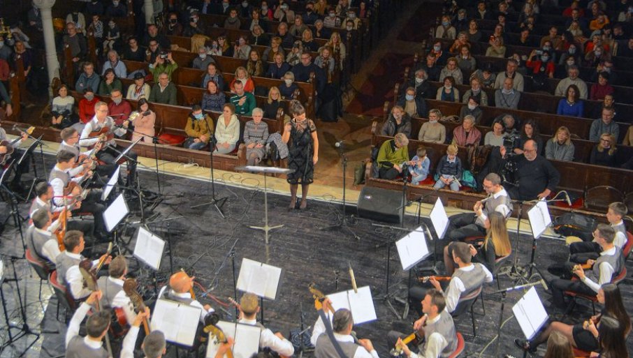 RUMLJANI RAZGALILI NOVOSAĐANE: Rumski gradski tamburaški orkestar "Branko Radičević" održao koncert u sinagogi