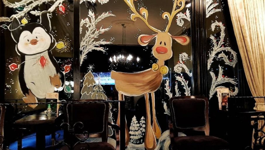 ZIMSKA IDILA NA IZLOZIMA: U Vršcu još nije pao prvi sneg, ali ga je Dušanka Glumac „donela“ svojim oslikavanjem