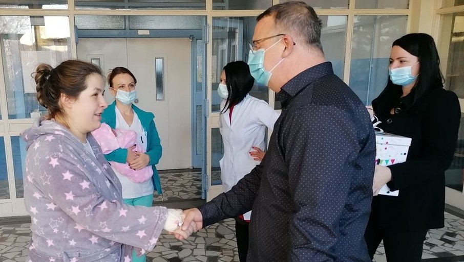 SAŠA Nikolić, predsednik opštine Kladovo u ostavci obišao je Sanju Đorđević, majku male Vedrane, prvorođene bebe u 2022. godini, u kladovskom porodilištu.