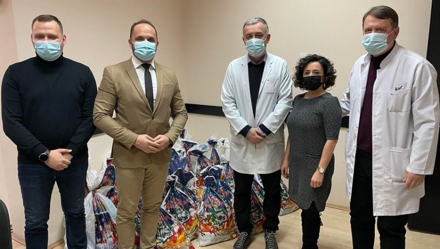 PAKETIĆI ZA DECU U KBC: Čelnici opštine Severna Mitrovica obezbedili poklone za mališane koji se leče i za novorođene bebe