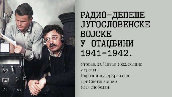 U GALERIJI kraljevačkog Narodnog muzeja, u utorak, 25. januara, sa početkom u 17 sati, biće održana promocija monografije „Radio-depeše Jugoslovenske vojske u otadžbini 1941 – 1942.“ u izdanju Instituta za savremenu istoriju u Beogradu.