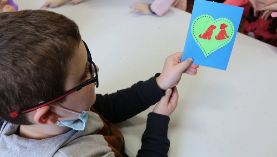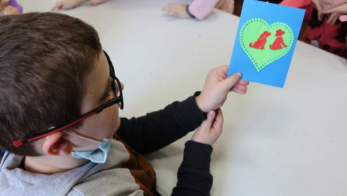 A na radionici, uz pomoć „čarobne mašine“, bombona i voditeljke Olivere Marjanović, mališani su najpre osmislili, a potom i napravili šarene čestitke za Dan zaljubljenih.