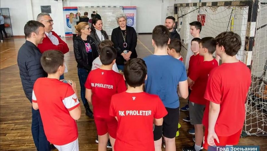 DONACIJA OSNOVCIMA, PA UTAKMICA SA ŠVEDSKOM: Čelnici Rukomentnog saveza uručili opremu zrenjaninskoj osnovnoj školi (FOTO)