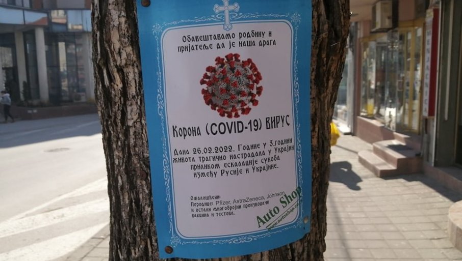 - Obaveštavamo rodbinu i prijatelje da je naša draga Korona (kovid-19) Virus dana 26. 2. 2022. godine u 3. godini života tragično nastradala u Ukrajini prilikom eskalacije sukoba između Rusije i Ukrajine. Ožalošćeni: Porodice Pfizer, AstraZeneca, Johnson i ostali mnogobrojni proizvođači vakcina i testova – navodi se u tekstu, a onda sledi reklama za jednu firmu.