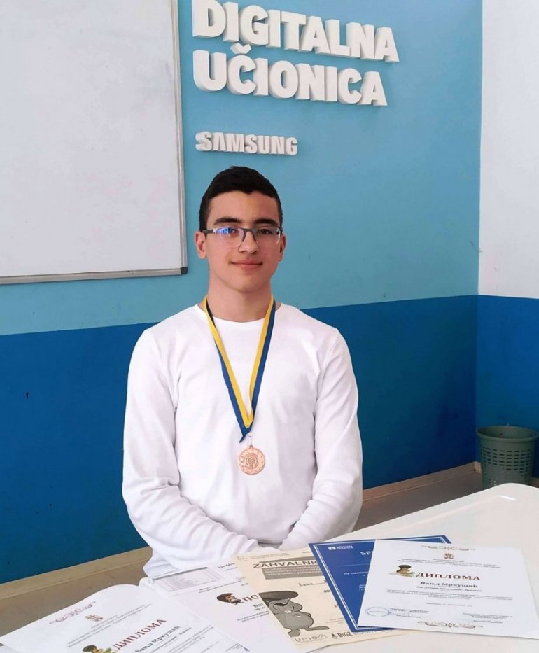 Budući programer sa osmehom objašnjava da se definitivno ne plaši prijemnog ispita za upis u specijalno odeljenje za posebno nadarene za informatiku i računarstvo. Iz osnovne škole, osim mnogobrojnih diploma sa različitih takmičenja, a sad i titule državnog prvaka, poneće i Vukovu diplomu.