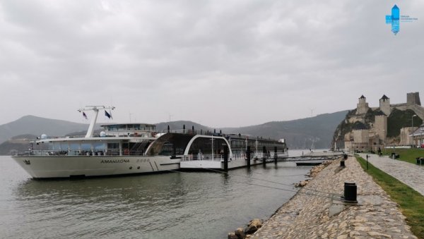 SEZONA KRUZERA NA DUNAVU: Najveći evropski kruzer stigao do Golubačkog grada