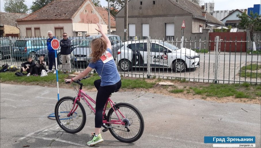 ZRENjANINSKA Osnovna škola Žarko Zrenjanin bila je domaćin okružnog takmičenja osnovaca "Šta znaš o saobraćaju", na kojem su najbolji osnovci sa teritorije Srednjobanatskog okruga demonstrirali veštine u praktičnom delu vožnje bicikla na poligonu i polaganju testova iz oblasti bezbednosti saobraćaja.
