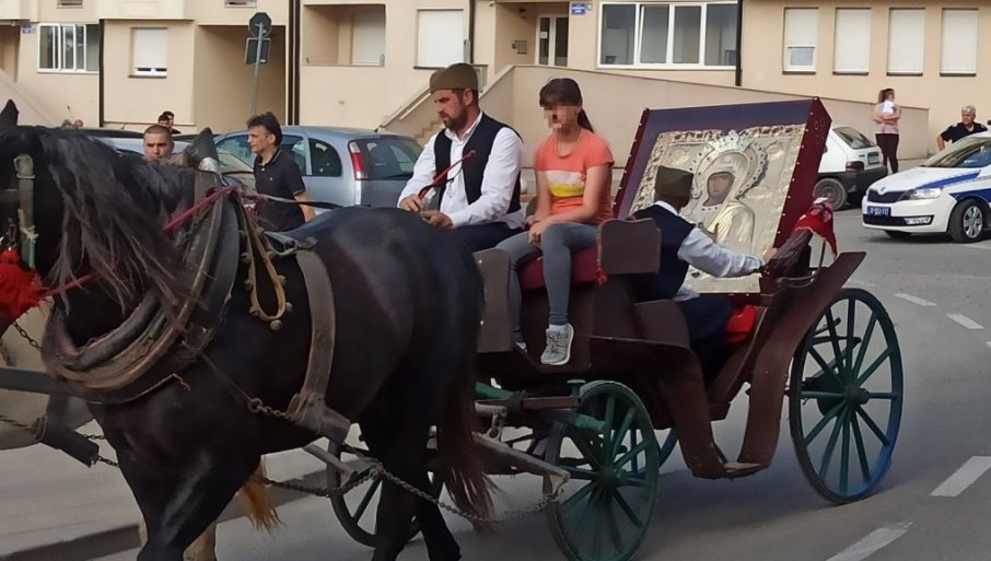DOČEK TROJERUČICE U LOZNICI: Doneta ikona iz Hilandara, više stotina vernika na ulicama (FOTO)