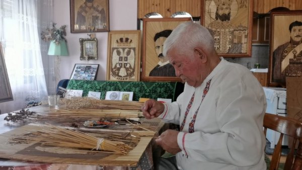 - Ovo je naiva, intarzija u primenjenu umetnost. To je tehnika koju i sada rade u Banatu, ali peglaju slamu i onda je pletu i prave razne motive. Ja sam nastavio to da radim i kada sam se vratio u rodni Gadžin Han i jedinstven sam zasada, jer radim sa celom stabljikom, nema peglanja, nema ništa, već kako je priroda dala, tako se slaže - priča, za "Novosti", Vitomir.