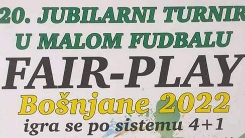 U SELU Bošnjane kod Paraćina sutra uveče će biti svečano otvoren «Fer plej» turnir u malom fudbalu, dvadeseti po redu.