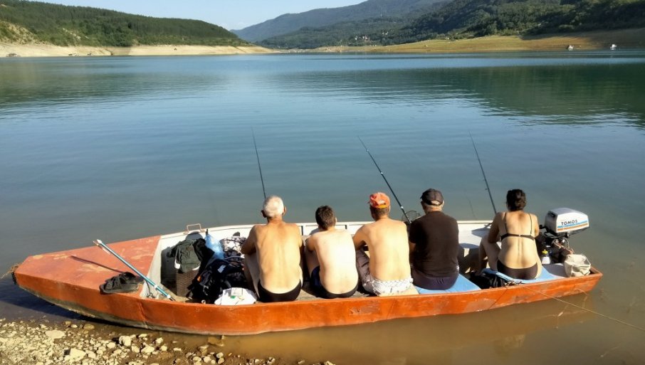 Zanimljiv prizor usnimili smo na Zavojskom jezeru, nedaleko od Brane, gde se u jednom čamcu, poput sardina smestilo petoro pecaroša-rekereativaca i svi pecaju. Kažu da im riba nije prevashodni cilj, već lepo druženje i osveženje na temperaturama od preko 35 stepeni.