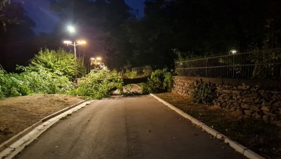 SNAŽAN VETAR SRUŠIO DRVO U VRŠCU: Stablo polomilo ogradu Gradskog parka (FOTO)