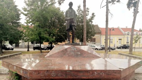 SPOMENIK najznamenitijem Vrščaninu Jovanu Steriji Popoviću, koji se nalazi na Pozorišnom trgu u Vršcu, ponovo je bio na meti vandala, koji su ga našminkali i oskrnavili grafitima.