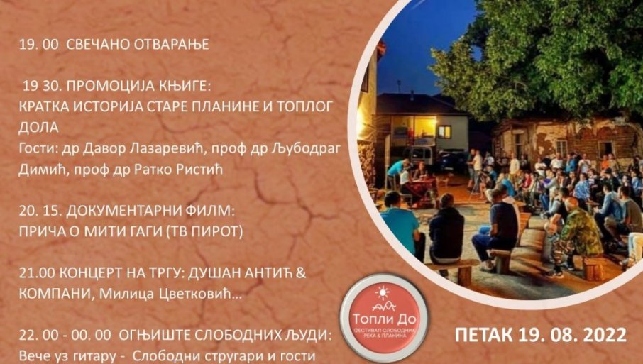 NAJUDALjENIJE pirotsko selo Topli Do, podno Midžora na Staroj plnini, od 19. do 21. avgusta biće organizator Festivala „Slobodnih reka“.