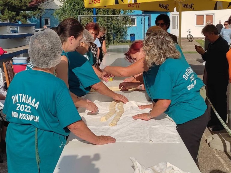 - Danas je celo naše selo mirisalo na pitu. Nas petnaestak žena je napravilo pitu za Ginisa i možemo da budemo ponosne, jer je duga 30,5 metara i 45 centimera je duža od prethodne koju smo pravile pre dve godine. „Pitajada“ se nije održavala prethodne dve godine zbog epidemije korone, ali smo ove godine ponovo umesile naš specijalitet. Kad se naše ruke slože, pita mora da bude dobra i ukusna. Utrošile smo 20 kilograma brašna, isto toliko krompira, osam litara ulja, četiri kilograma luka i pet kesica bibera. Još se doda samo so, jer naša krmpiruša ne sme da ima nikakve druge sastojke - otkrila nam je Boja Oljača, prerdsednica Udruženja žena iz Novih Kozaraca.