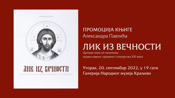 U Galeriji Narodnog muzeja u Kraljevu večeras će, sa početkom u 19 sati, biti održana promocija knjige „Lik iz večnosti: Crtanje lika po načelima pravoslavnog crkvenog slikarstva 13. veka“ autora Aleksandra Pavlića.