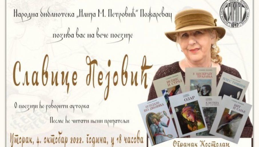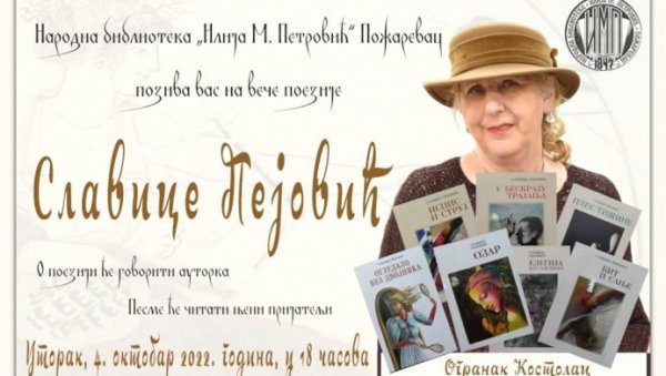 U UTORAK, 4. oktobra, u kostolačkom ogranku požarevačke Narodne biblioteke „Ilija M. Petrović“ na programu je veče poezije.
