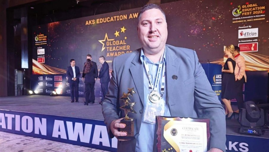 - Nagradu mi je uručio i lično čestitao zamenik ambasadora Srbije u Indiji Lazar Vukadinović, učinivši nam veliku čast jer je došao da podrži delegaciju Asocijacije najboljih nastavnika sa prostora bivše Jugoslavije, koja me je i nominovala za internacionalno priznanje. Tokom svečanosti, pozvao sam prisutne iz stotinu država da nastave svoju misiju kao pravi superheroji, a onda sam, sa članovima naše delegacije, sa bine najpre otpevao himnu asocijacije "Zemljo moja", a onda, sa gospodinom Vukadinovićem, i "Tamo daleko". Uz demonstraciju kako se u Srbiji igra kolo, to je izazvalo istinsko oduševljenje svih koji su prisustvovali svetskom forumu obrazovanja - prenosi Petrović prve utiske, napominjući da su ceremoniji prisustvovali još ambasadori Severne Makedonije i Hrvatske.