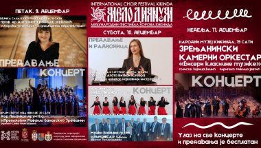 - Novina ove godine su dva stručna predavanja. O ,,Horskom pevanju iz različitih perspektiva", u petak će govoriti profesorica Antoneta Radočaj Jerković, a u subotu, od 18 sati, vokalnu radionicu „Glas kao čovekov najznačajniji instrument“, održaće profesorka doktor Agota Vitkai Kučera" – najavio je Marko Markovljev, v.d. direktora Kulturnog centra.