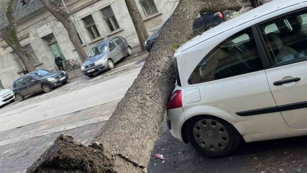 OŠTEĆENA TRI AUTOMOBILA: Palo drvo u centru Kikinde, samo srećom niko nije stradao (FOTO)