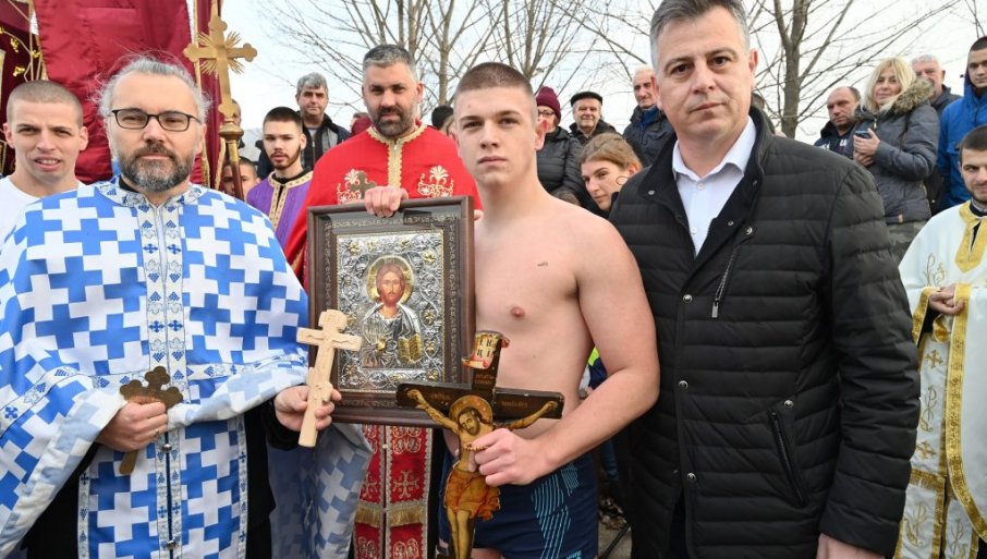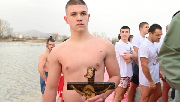 NIKOLA PRVI DOPLIVAO: Plivanje za časni krst u Pirotu (FOTO)
