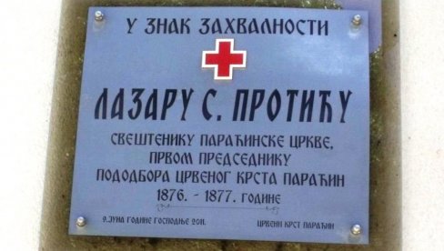 Prvi predsednik pododbora u Paraćinu bio je Lazar S. Protić, sveštenik paraćinske crkve, pa Crveni krst tradicionalno obeležava 6. februara godišnjicu svog osnivanja polaganjem venca na spomen-ploču svom prvom predsedniku u porti Crkve Svete Trojice.