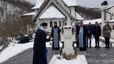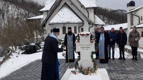 Vladika Lavrentije je, pošto su ga dočekali nastojatelj svetinje, arhimandrit Nifont, sa monaštvom i sveštenstvom iz Azbukovice, služio pomen pre nešto više od godinu dana upokojenom episkopu Lavrentiju.