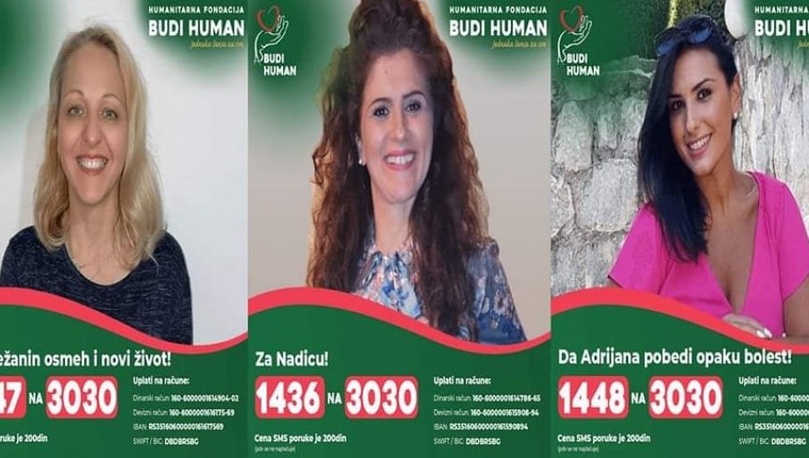 POČELO je spontano kao prikupljanje pomoći za Nadicu Stošić koja treba da putuje u Rusiju na lečenje matičnim ćelijama, onda su ubrzo korisnice fondacije Budi human postale i Adrijana Simenova koja se godinama bori sa karcinomom, a šansa za njeno izlečenje je u Atini i Snežana Stanković koja čeka na transplataciju bubrega u Belorusiji.