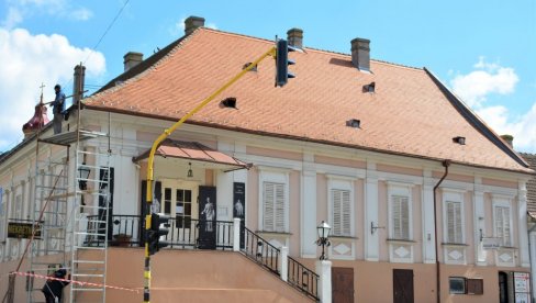 Oko zgrade je postavljena pokretna skela, jer majstori postavljaju nove oluke. Zato iz muzeja apeluju na prolaznike da vode računa kada tuda prolaze.