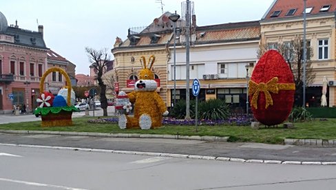 Dekoraciju čine tri velike figure - uskršnji zec, šareno jaje i korpa sa jajima. Reč je o prazničnoj dekoraciji kojom je centar grada bio ukrašen i prošle godine, na istoj lokaciji.