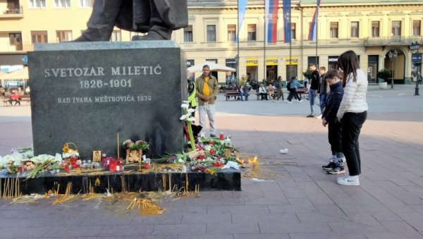 Najviše je učenika i mladih, ali i onih vremešnijih Novosađana, koji u pomen nastradalim mališanima, na postolju spomenika Svetozaru Miletiću polažu cveće i igračke, ostavljaju poruke, pale sveće i lampione, čiji plamen neprestano gori.