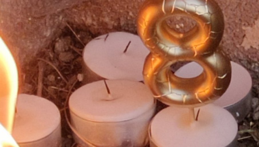 Posebno dirljiv detalj je bila upaljena sveća u obliku broja 8.