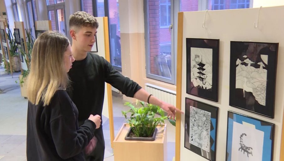 ZAJEDNO STVARAJU REMEK-DELA: Hol ETŠ „Nikola Tesla“ u Jagodini krase likovni radovi sestara Mihajlović (FOTO)