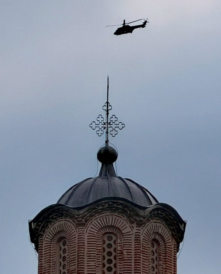 ZA VREME BESEDE PATRIJARHA: Helikopter KFOR-a nadleće Gračanicu (VIDEO)
